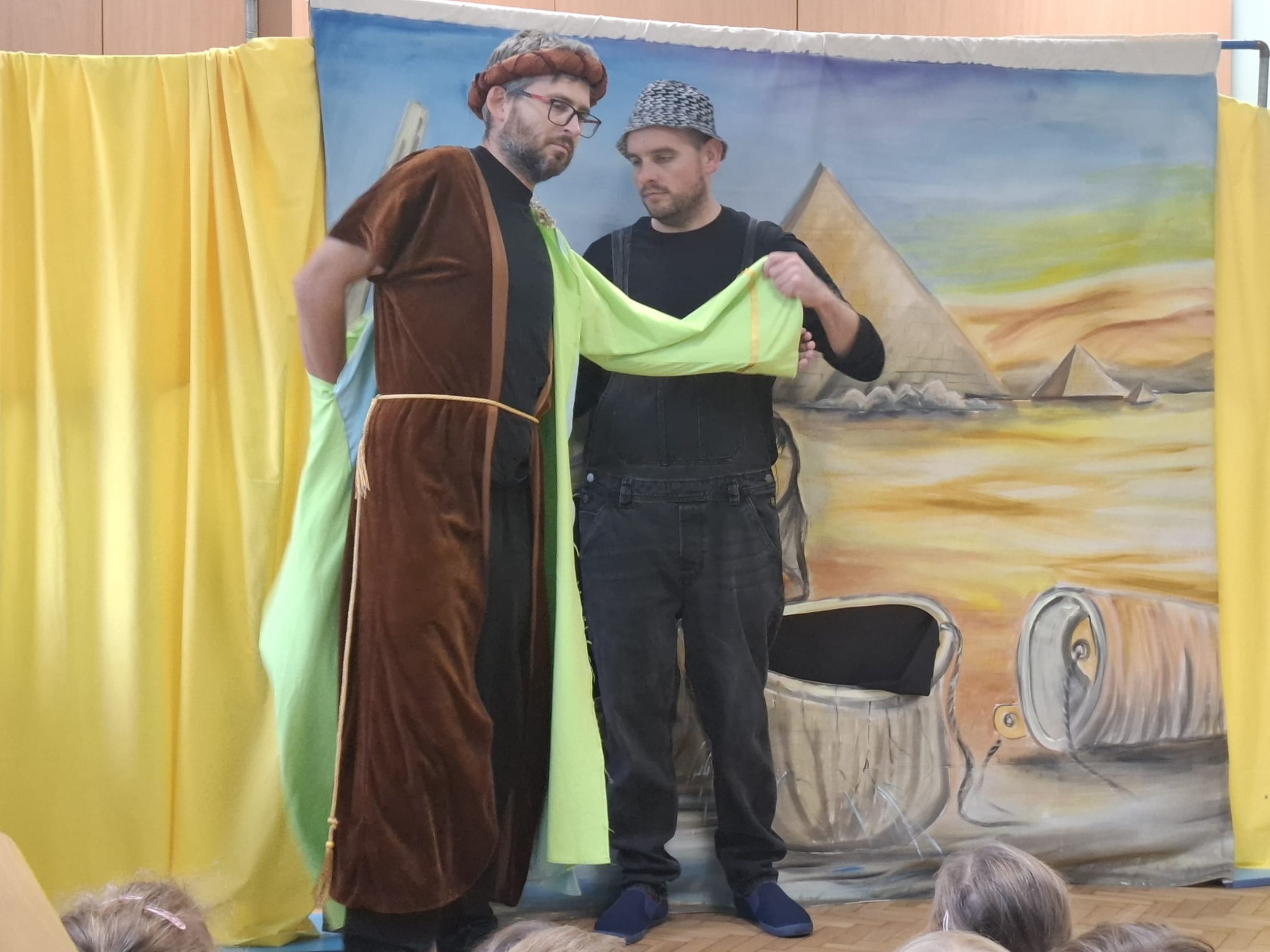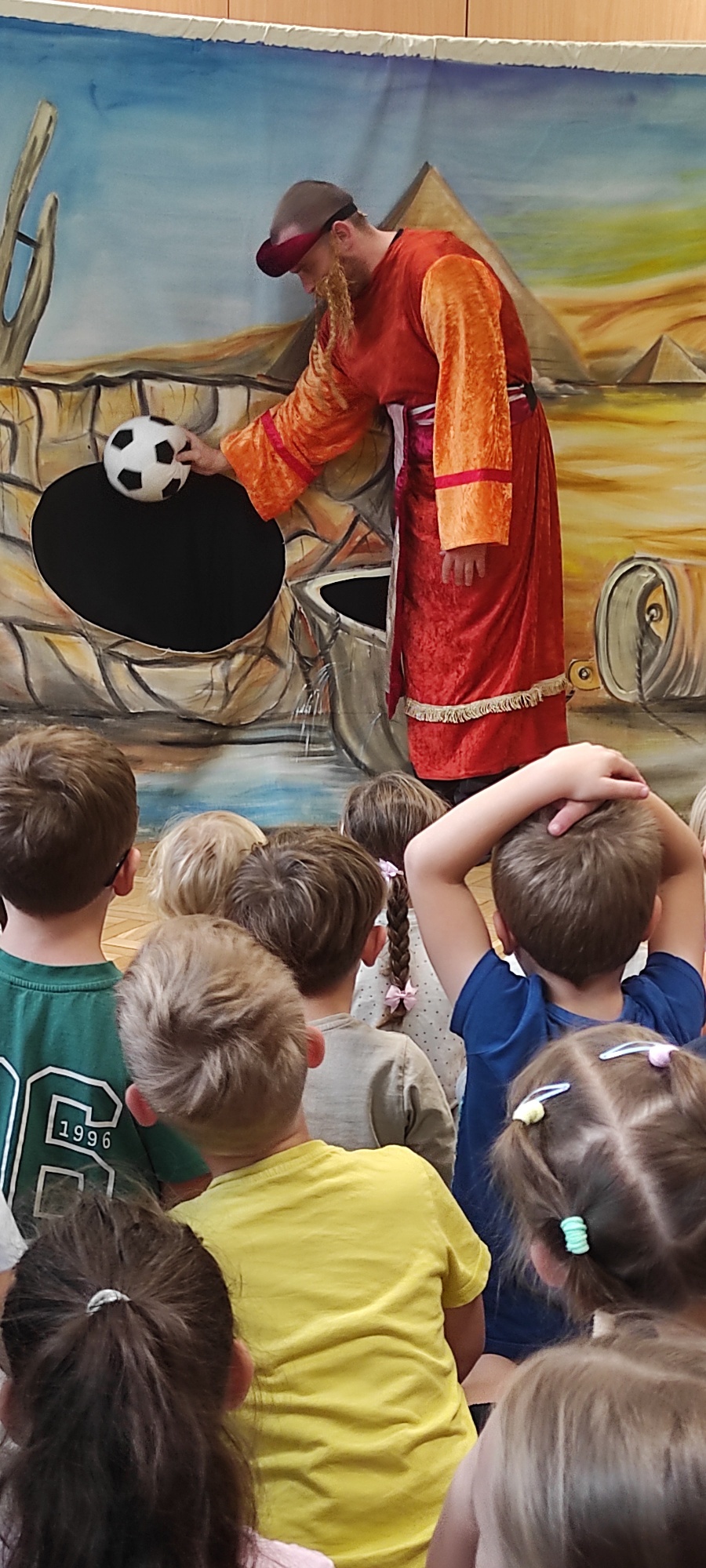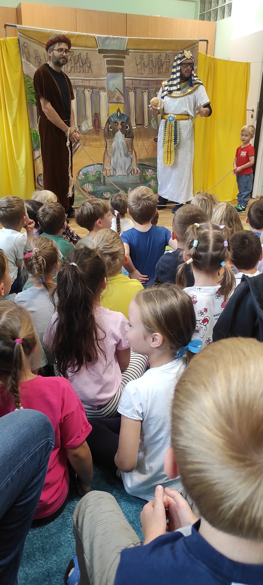 - W dniu dzisiejszym witaliśmy w przedszkolu aktorów teatru EDEN, z przedstawieniem "Ukryte bogactwo". Dzieci miały możliwoś dowiedzieć się czym może być bogactwo i gdzie jest ukryte. Niekoniecznie są to złote szaty czy skarby gromadzone wokół siebie, ale miłość, szacunek i wzajemna pomoc, a także umiejętność przebaczania.