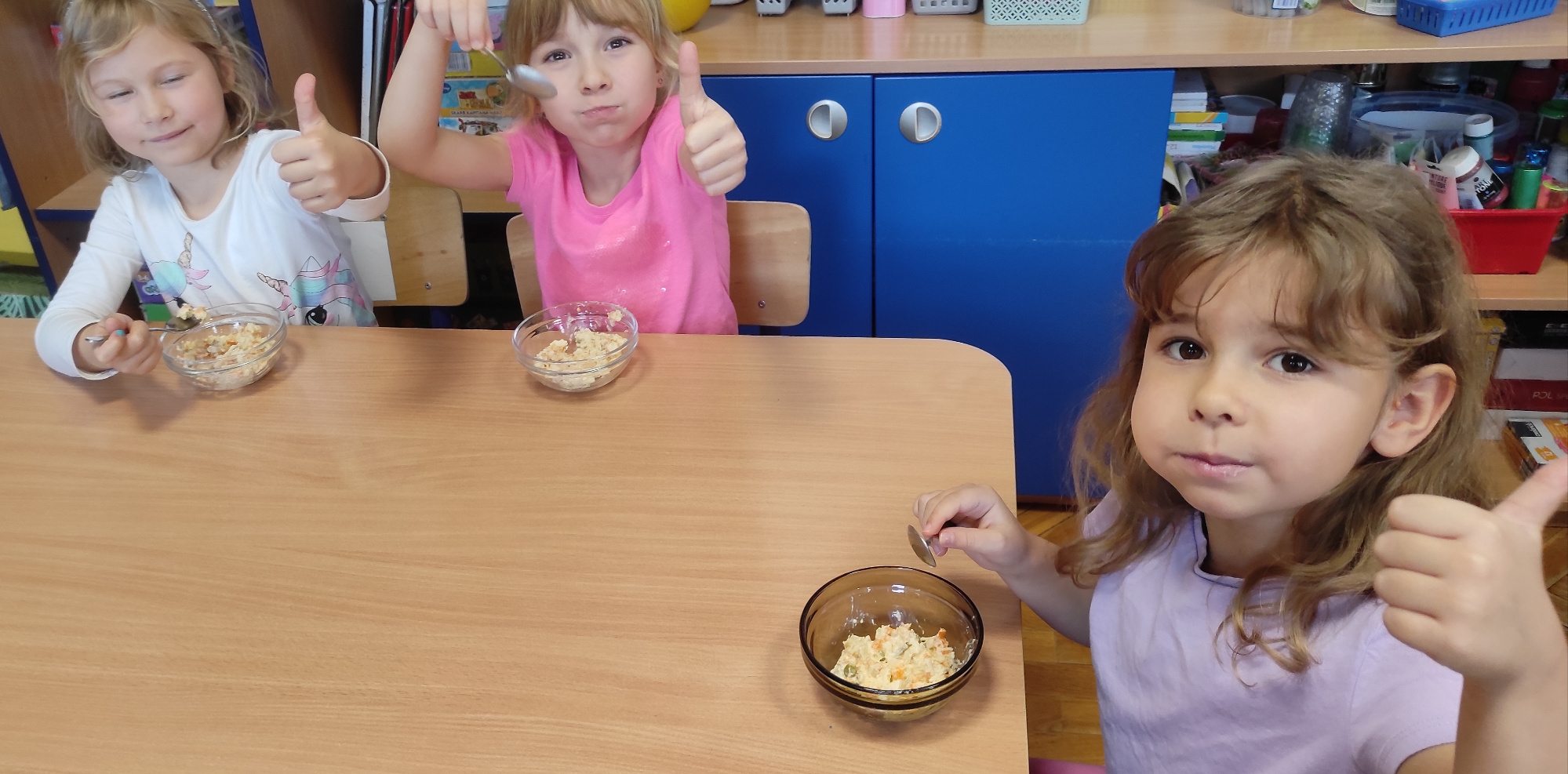 Serdecznie dziękujemy wszystkim Rodzicom za wsparcie, za dostarczenie dzieciom warzyw, przyborów i narzędzi, które pozwoliły w pełni uczestniczyć w tych atrakcyjnych i pożytecznych mini warsztatach kulinarnych. Dzięki wspólnemu zaangażowaniu powstała nie tylko sałatka, ale też mnóstwo radości i pozytywnych emocji!