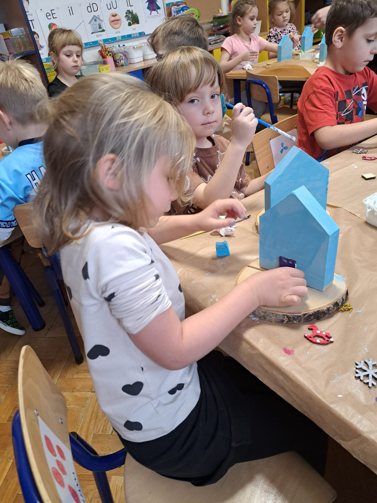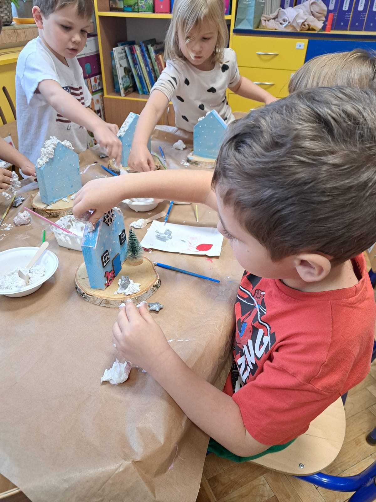 • W naszym przedszkolu odbyły się wyjątkowe warsztaty plastyczne z firmą „Ciotki Klotki”, które wprowadziły dzieci w świąteczny nastrój. Podczas zajęć „Jeżyki” miały okazję kreatywnie tworzyć ozdoby bożonarodzeniowe w formie zimowych domków. Każde dziecko samodzielnie dekorowało swoją pracę, wybierając kolory, dodatki i detale według własnego pomysłu.