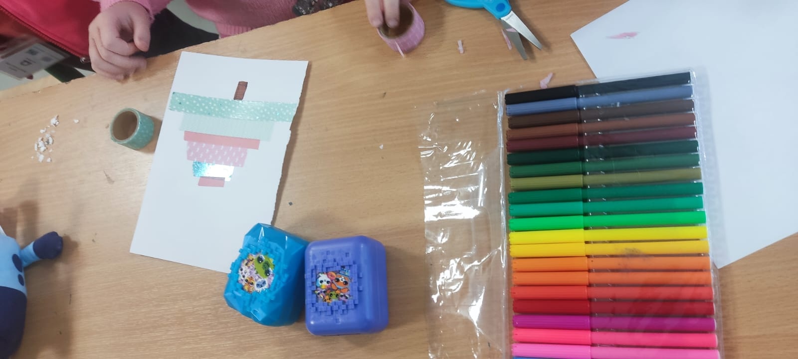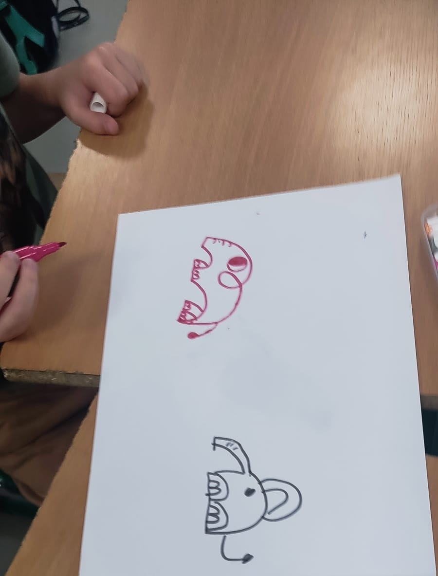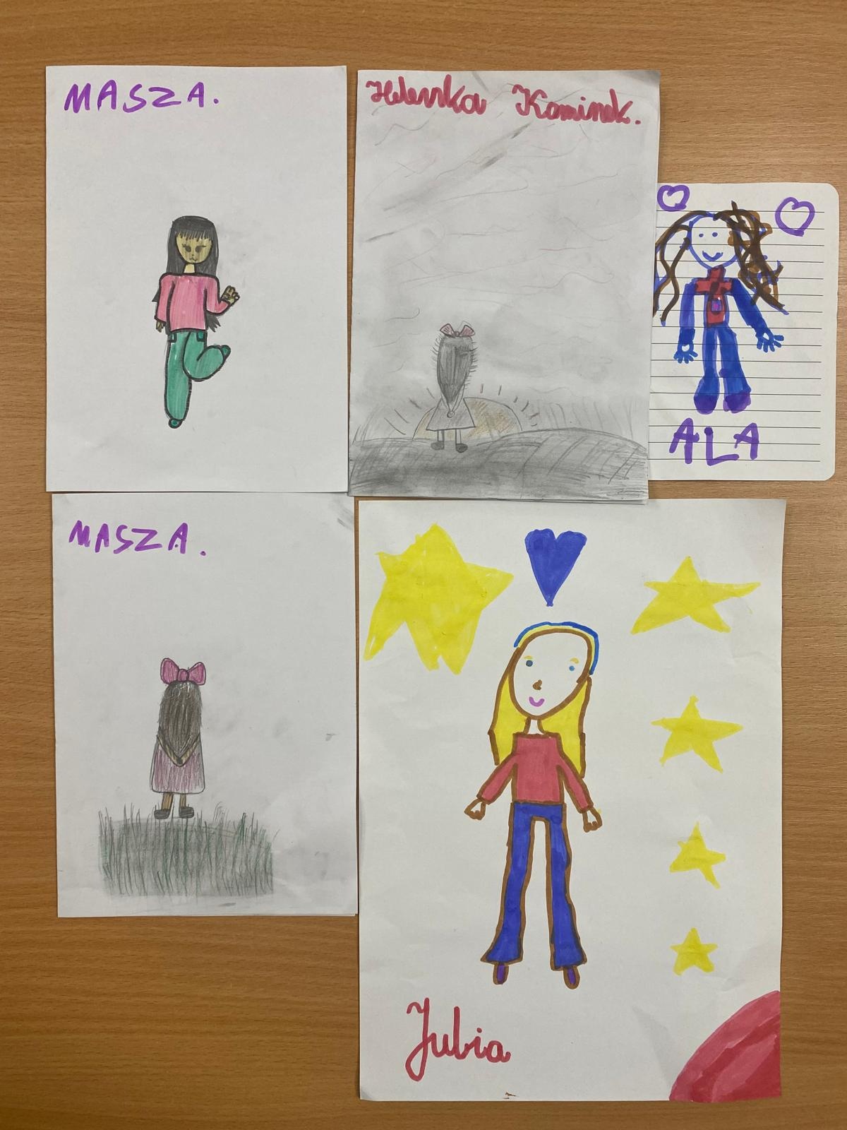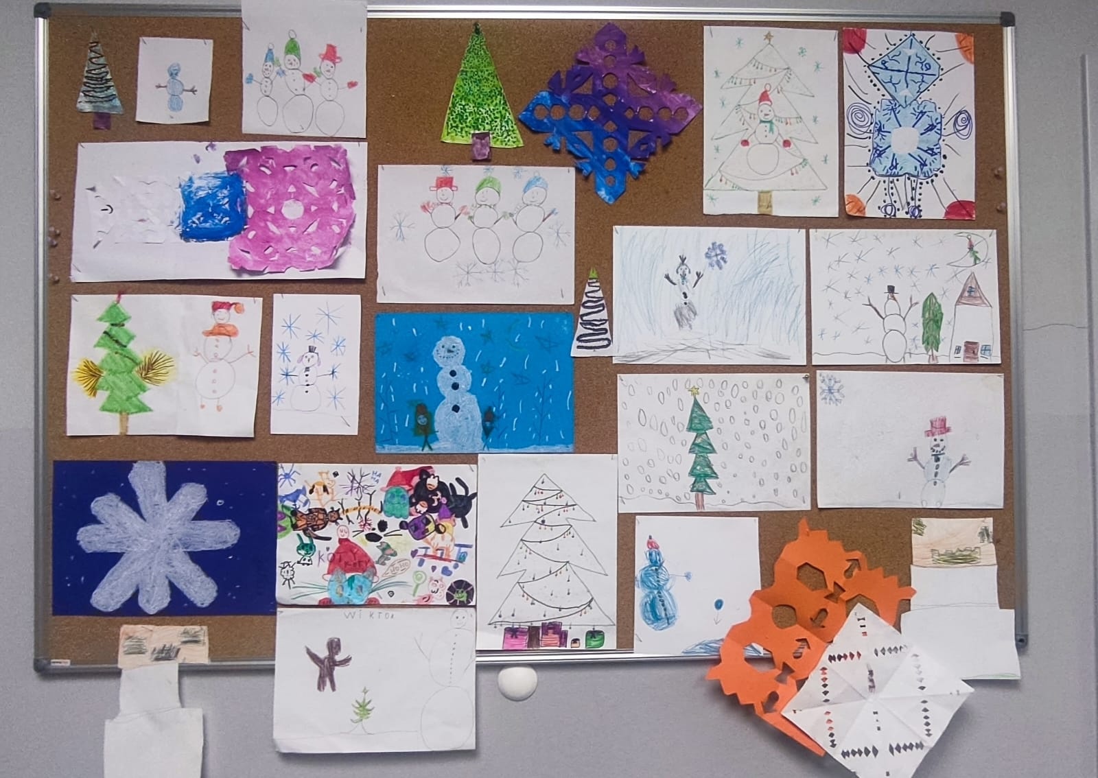 - Prace plastyczne i manualne: kartonowe akwarium, twarz 3Da także figurki z domowej ciastoliny.